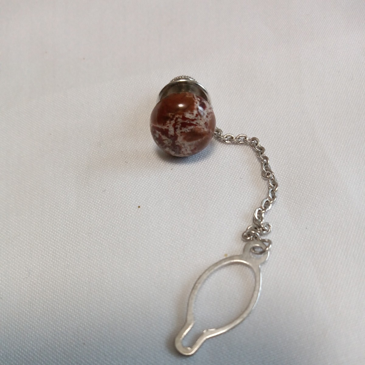 - 茶の斑石のタイタック。シルバー 新品、未使用。配送料無料。