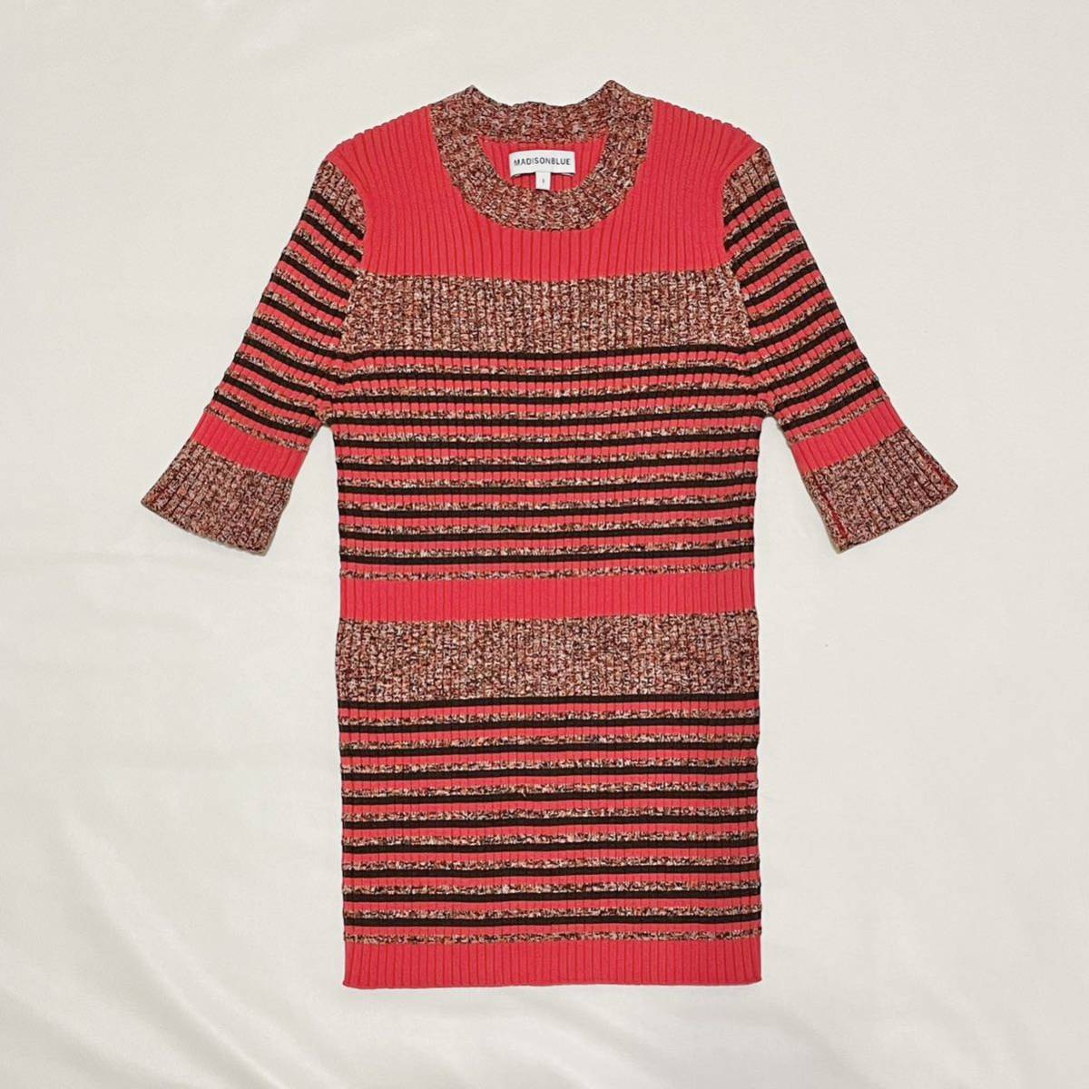 - マディソンブルーMADISONBLUEボーダー半袖リブニットトップ#1オレンジ,,