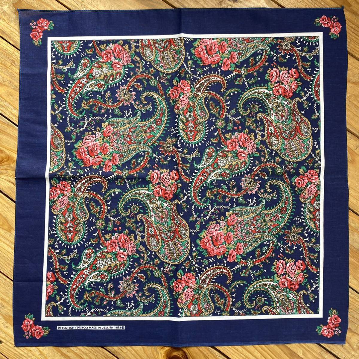 - 送料無料 Vintage バンダナ ペイズリー柄 ボタニカル 花柄 Made in USA RN14193 アメリカ仕入れ 雑貨 ハンカチ ヴィンテージ A0521