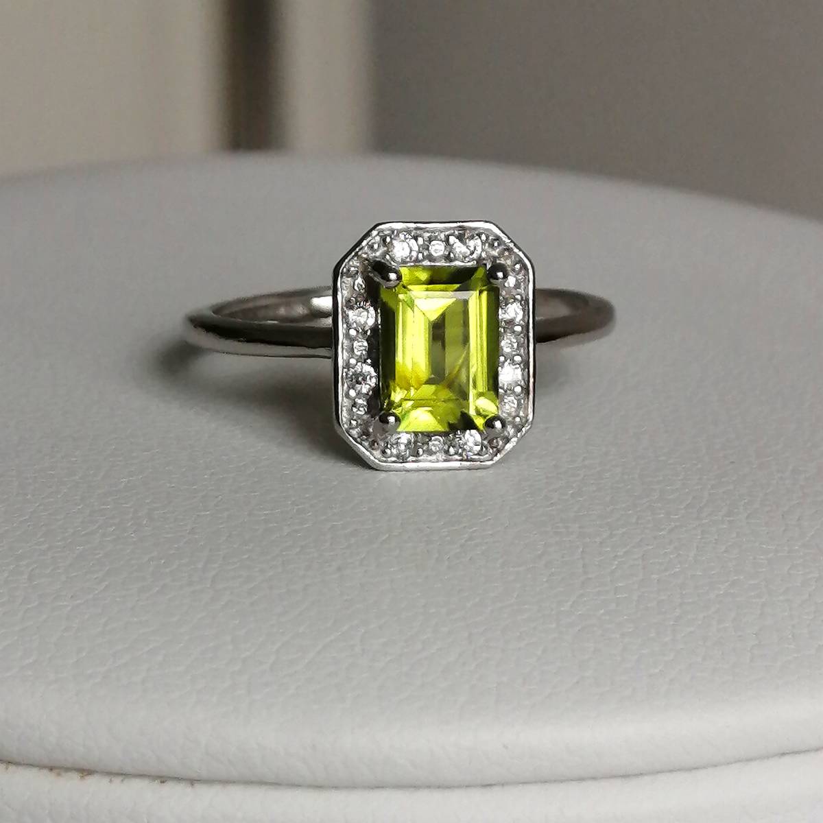 - ペリドットリング8月誕生石[4Ncre]スクエアカット7mm×5.3mm