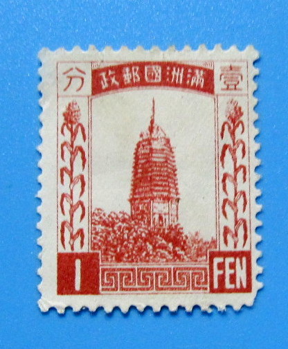 - 満州 普通切手 1分 1FEN 満州国郵政 裏のり有り ヒンジ跡2か所 透かしは無し 未使用
