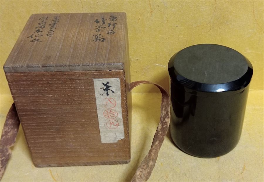 - 江戸時代 庸軒好 黒無地 棗 竹 茶入 木仙書付 古筆了意極め箱