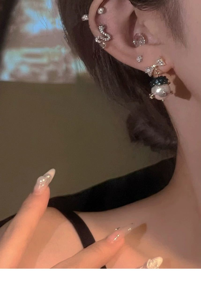- フレンチスタイルの優雅で精巧な蝶ノットパールイヤリング、上品で小さなラグジュアリー、個性的でファッショナブル、