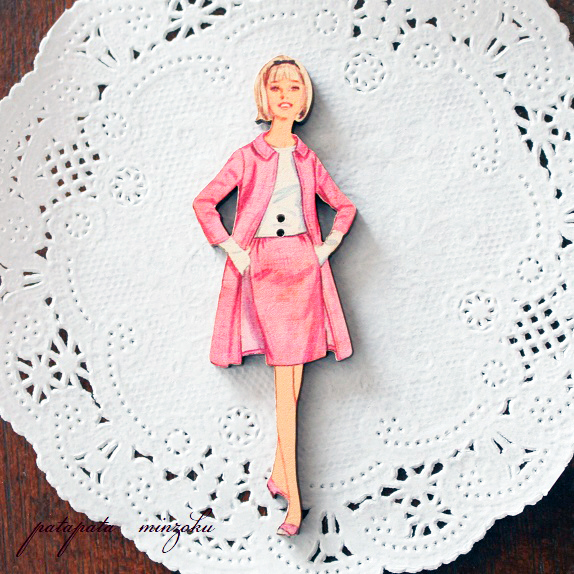 - ピンクのスーツの女性 フランス 製 木製ボタン アトリエ ボヌール ドゥ ジュール 手芸 ボタン 雑貨