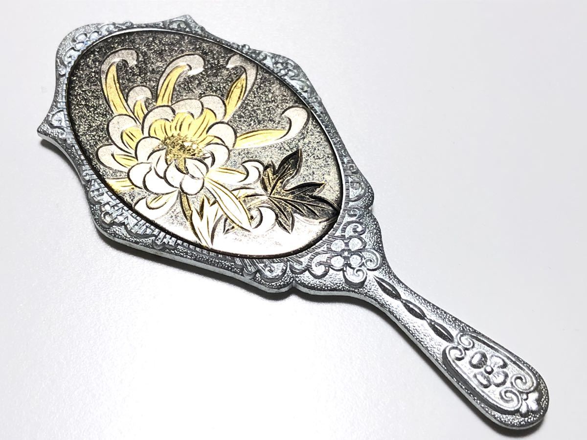 - アンティーク 彫金 32.0g 小ぶり 乱菊細工 手鏡
