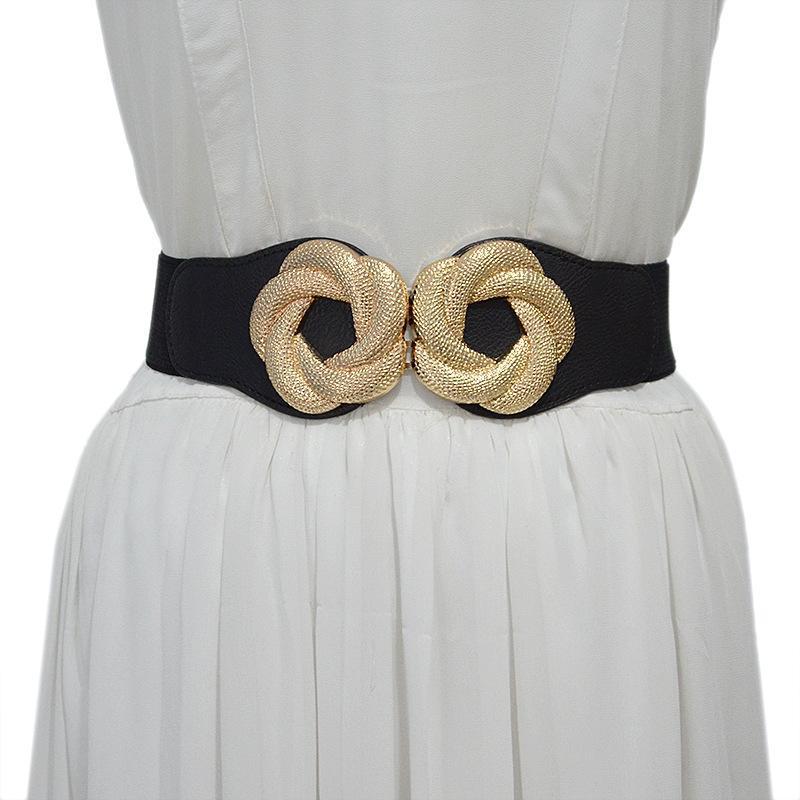 - 【ブラック色】ゴールドバックル 幅広ゴムベルト レディース