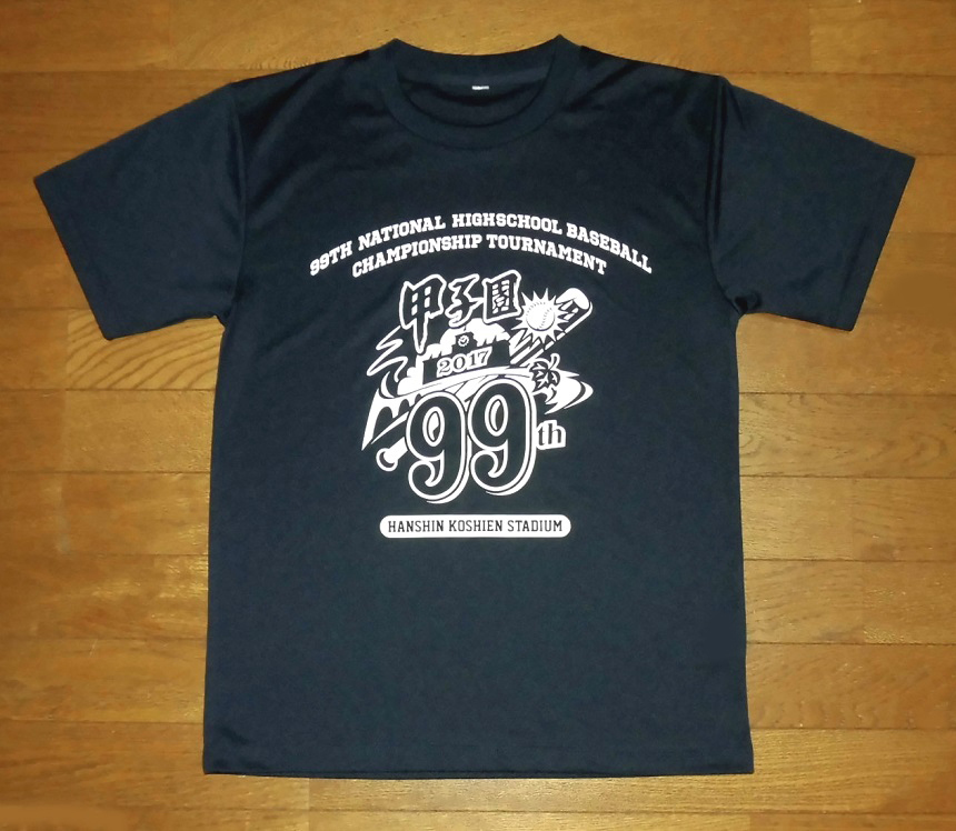 - 甲子園 2017年 第99回 全国高等学校野球選手権大会 半袖 ドライ Tシャツ NVY M相当 使用僅 美品/夏 高校野球 熱闘甲子園