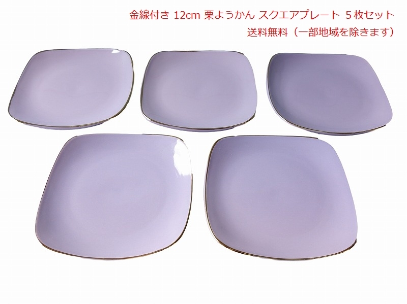 > 送料無料 5枚セット 小皿 四角 金付き 紫 12cm 和菓子 皿 角皿 レンジ不可 食洗機対応 美濃焼 日本製 デザート皿 豆皿 お茶請 和食器