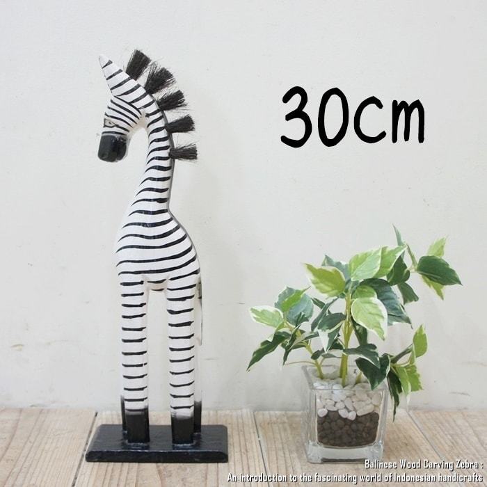 - シマウマのオブジェ W 30cm 白 しまうま 縞馬 木彫りの動物 木彫りの置物 ハンドメイド 動物インテリア プレゼント