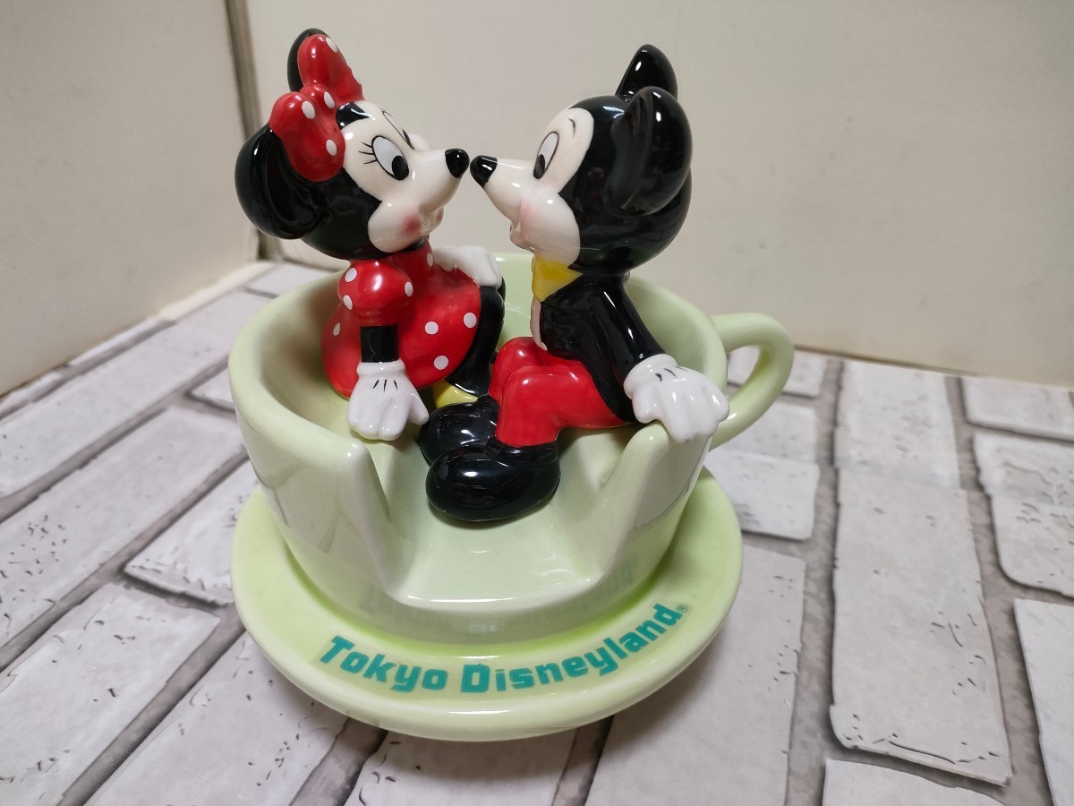 - ビンテージレトロ。ミッキーマウス、ミニーマウス 陶器製 ティーカップオルゴール 動作品。