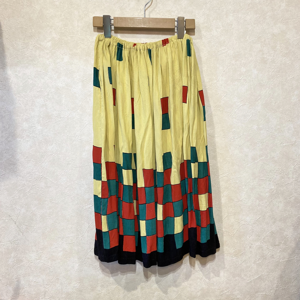 > 60〜70年代 ヴィンテージ Vintage ハンドメイドギャザースカート アンティークレーヨン ウエスト60cm〜