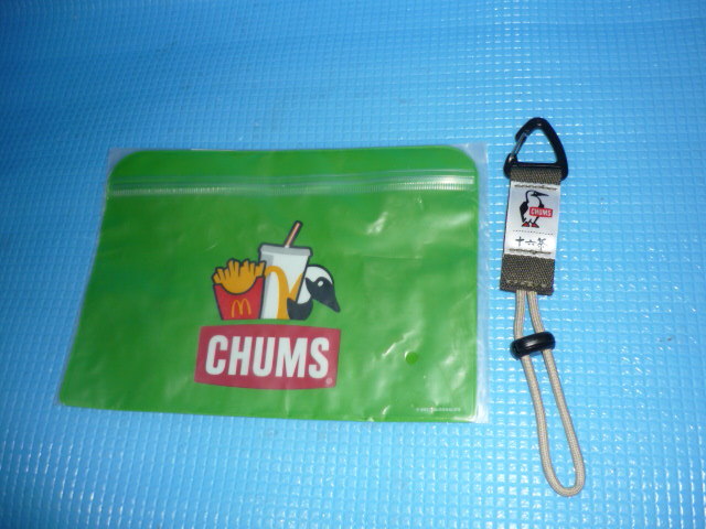 > b★未使用・非売品★アサヒ十六茶×チャムス(CHUMS)ストラップ付ホルダーとマクドナルド ジッパーポーチ(グリーン)