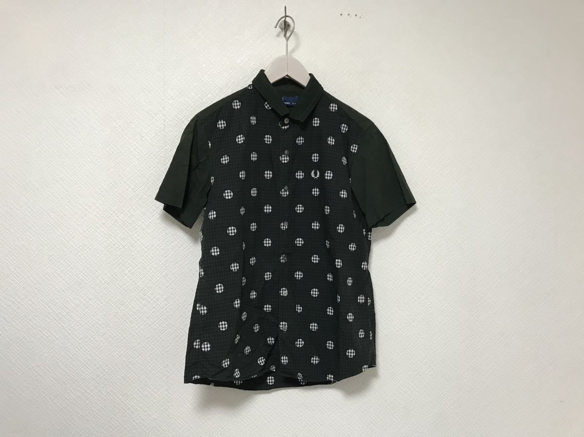 > 本物フレッドペリーFREDPERRYコットンギンガムチェック柄ロゴ刺繍半袖シャツメンズサーフアメカジビジネススーツストリートグレーM