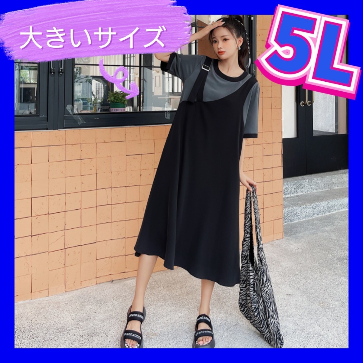 - 新品 ワンピース 重ね着ファッション 大きいサイズレディース ロングワンピース 5Lサイズ