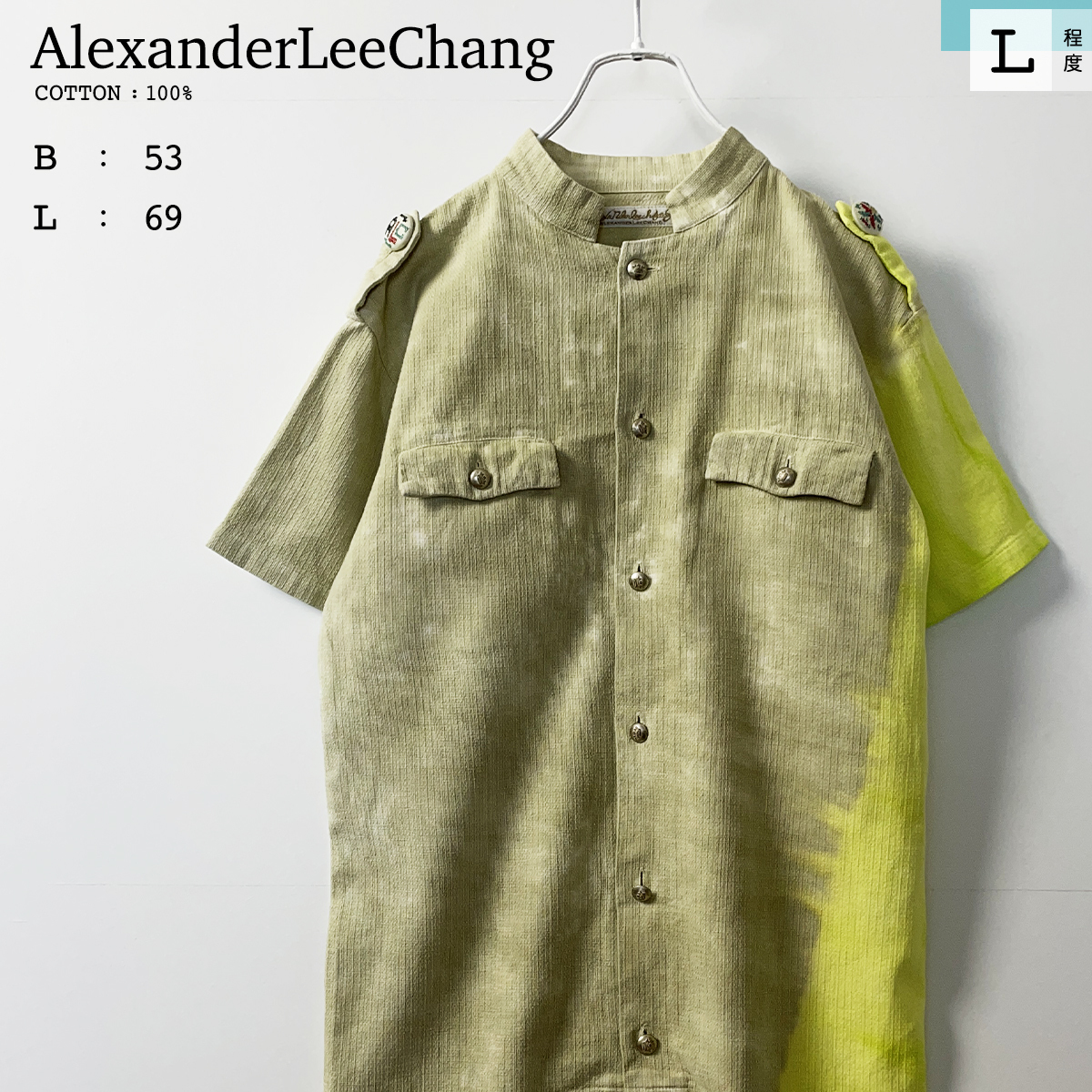 > AlexanderLeeChang ノーカラー 製品染め ボックス 半袖 シャツ ジャケット 綿 ベージュ カーキ 夏 アレキサンダーリーチャン 2 メンズ L