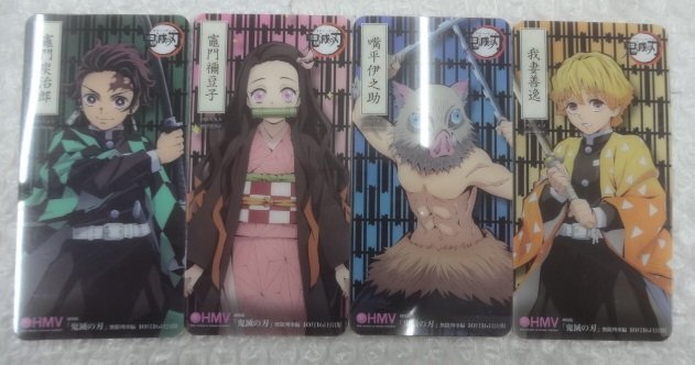 ★鬼滅の刃 鬼滅の刃 HMVキャンペーン オリジナルクリアしおり 全4種セット クリアカード 炭治郎 禰豆子 善逸 伊之助 グッズb●追跡番号付きのゆうパケット(クッション入り封筒)で発送致します。※開封、長期保管品につき程度はそれぞれですが全てのしおりにスレ等傷みが見受けられます。予めご了承下さいませ。