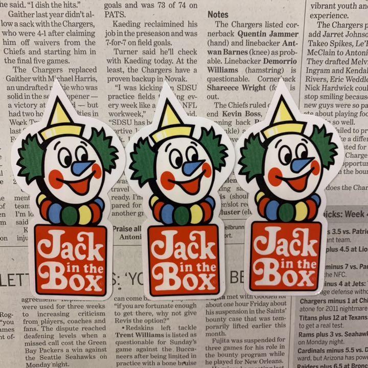 - ステッカー 3枚セット/Jack in the Box ジャックインザボックス シール ビニール USA ハンバーガー ピエロ バイク USA ロゴマーク 防水