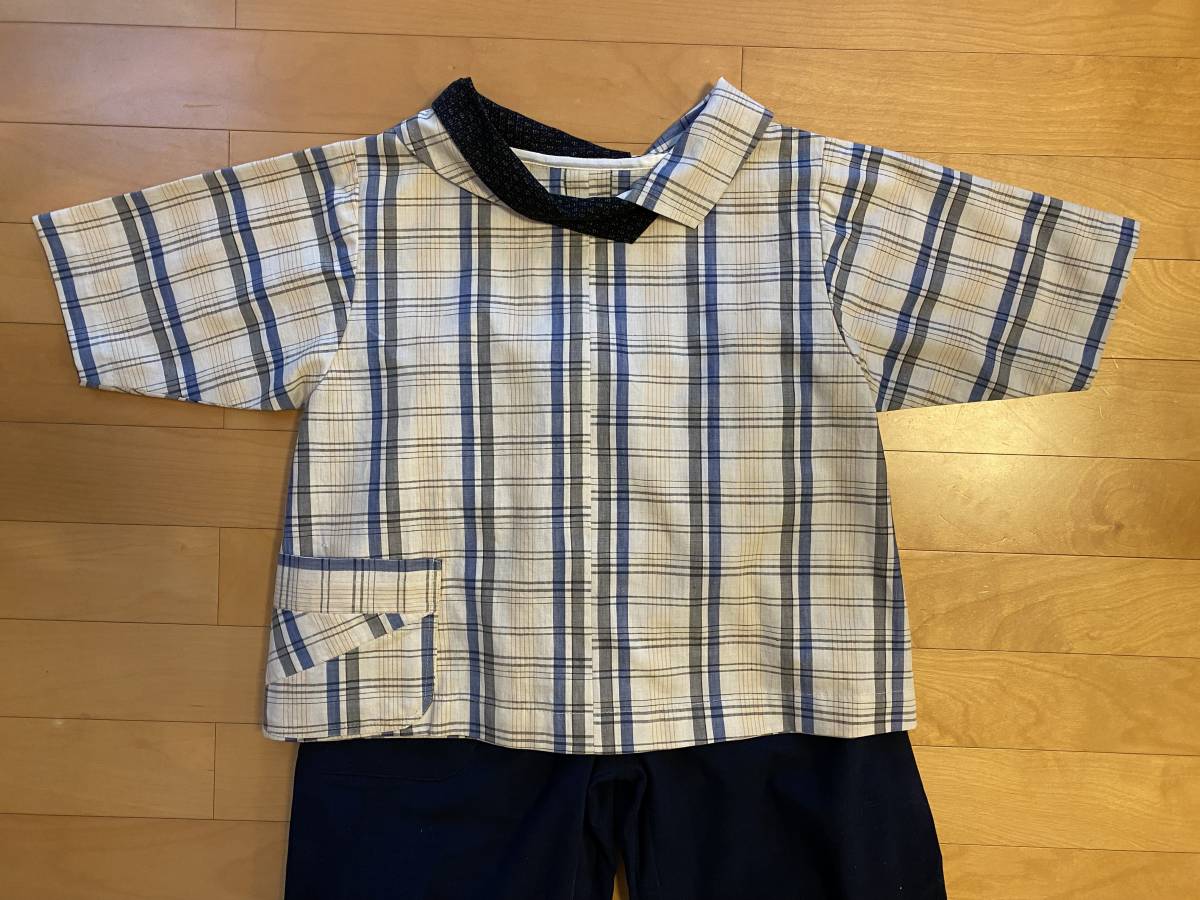 - ☆即決☆ 古布100% 着物リメイク 格子柄 半袖ブラウス 生成り 百貨店