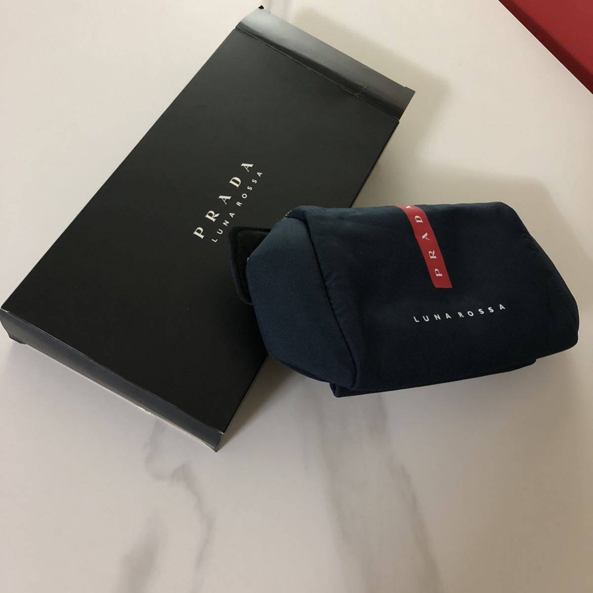 > ◆◆◆プラダ PRADA フレグランスブランド「ルナ・ロッサ」ポーチ 正規品 箱付き 未使用品 濃紺