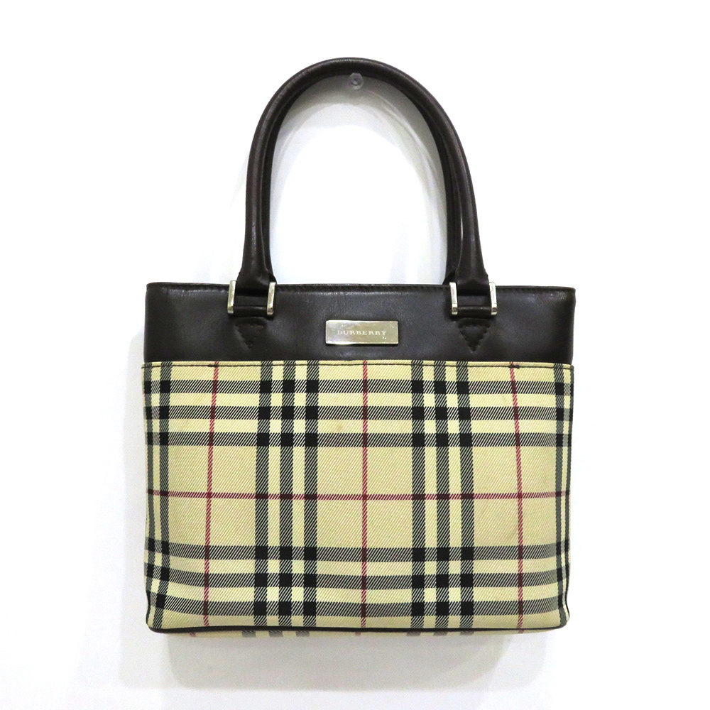 - 中古 バーバリー バッグ ハンドバッグ チェック Bランク キャンバス レザー ベージュ ブラウン レディース BURBERRY【送料無料】【西神店】