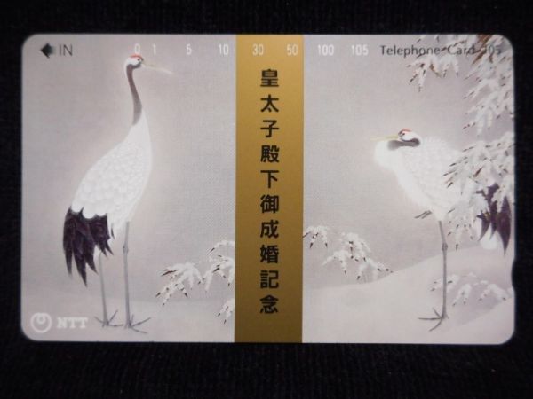 - テレカ 105度 皇太子殿下御成婚 上村松篁 丹頂 一対 イラスト T-7120 未使用