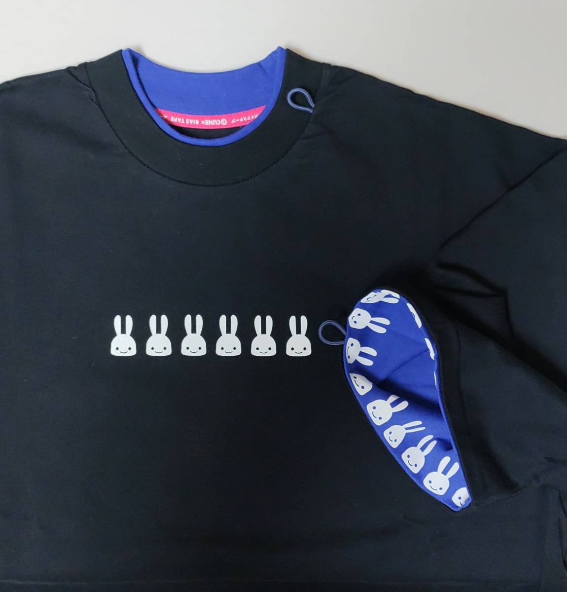 > 2022 日本製 CUNE『レイヤード風Tシャツ』丸首 半袖 黒 前袖プリント CUNEウサギ サイズ2・身幅約57cm※未試着品/未使用品/商品タグ付き