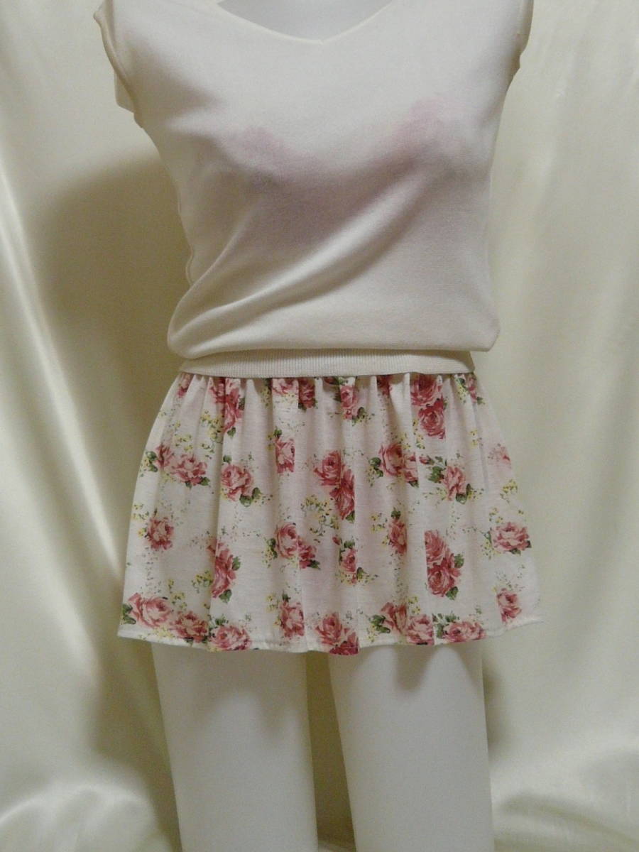 - ♪♪白地ピンク薔薇柄の超マイクロミニ☆柔らかな手触り^^♪♪
