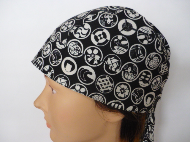 - 即決【和柄 家紋風】バンダナキャップ◆メットインナーキャップ◆ヘッドラップ◆ハンドメイド◆送料無料