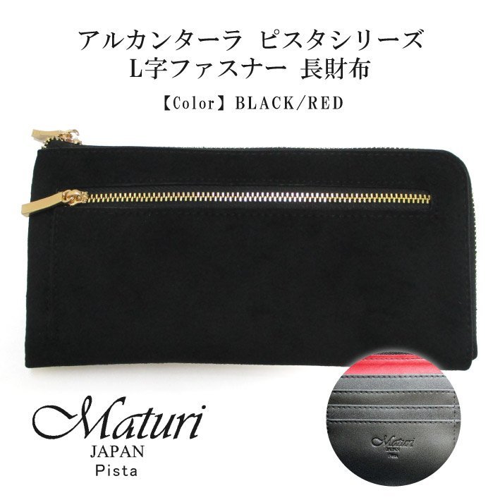 > 【Maturi マトゥーリ】 アルカンターラ ピスタシリーズ L字ファスナー 長財布 薄型 本革 MR-100 BK/RD 定価28000円 新品