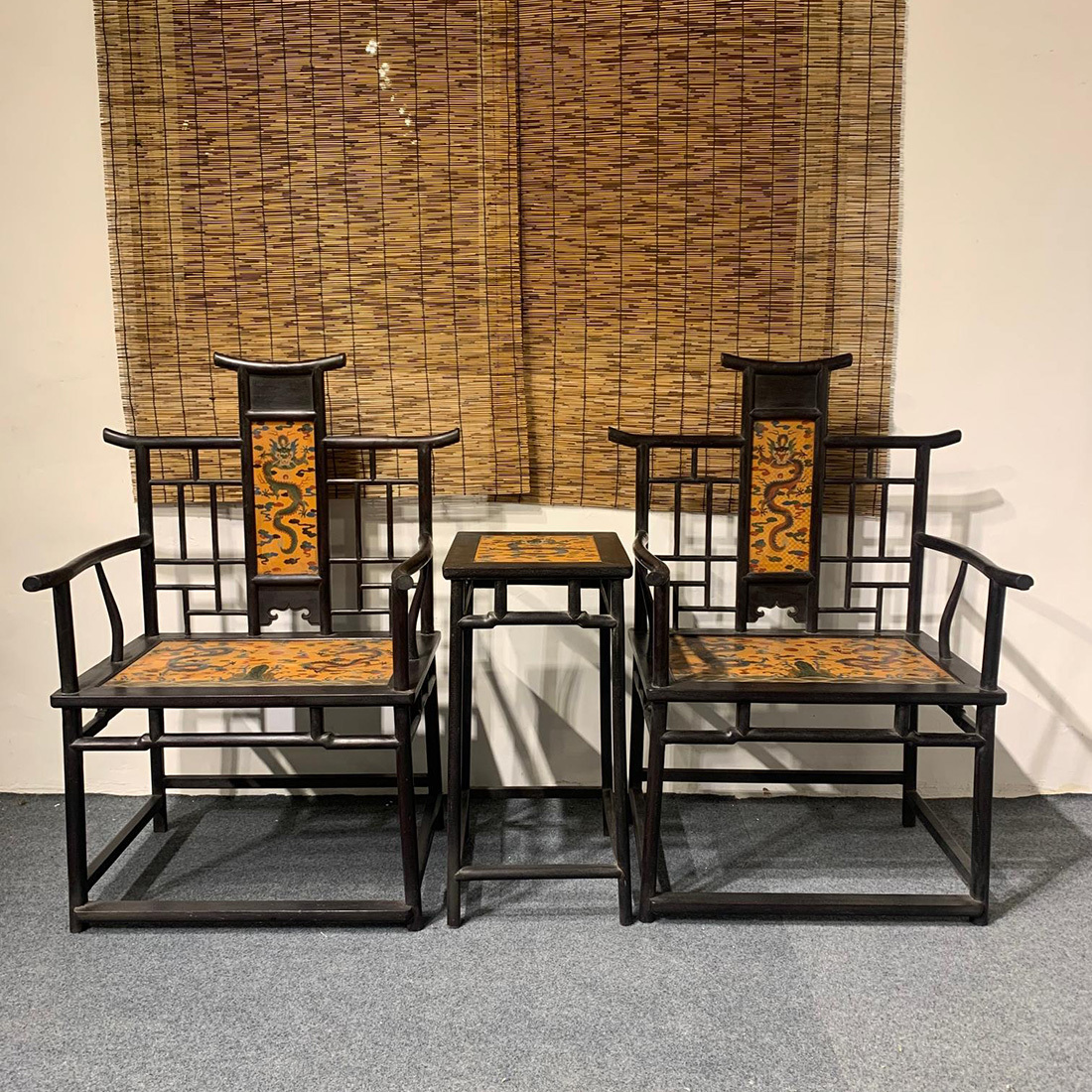 - 古珍木 中国・清時代 乾隆年製 紫檀木六出頭官帽椅子3点セット 文房置物 木器 古美術 古賞物 唐物 骨董 時代物 LT-09079