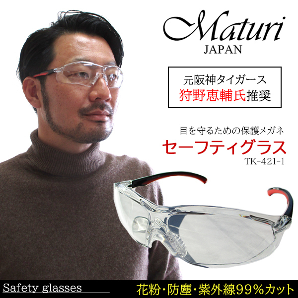 > 【元阪神タイガース 狩野恵輔氏推奨】Maturi セーフティグラス 保護メガネ 花粉 防塵 クリアレンズ ケース付き TK-421-1 新品