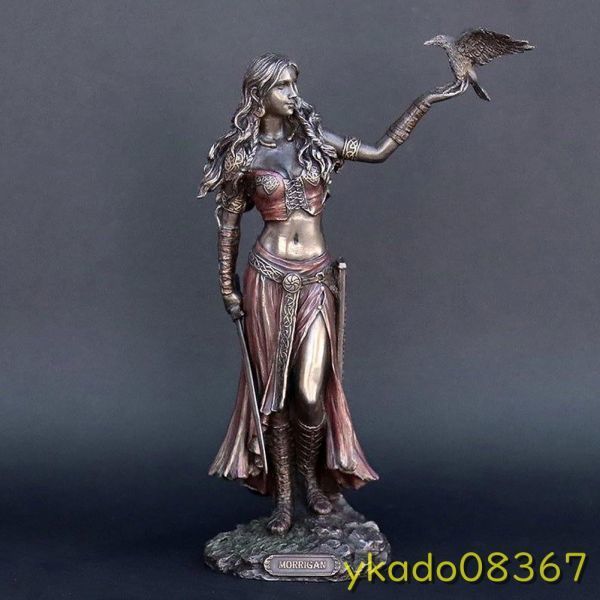 - P2313: ★人気商品★レジン像モロッガン焼き女神 カラスと刀仕上げブロンズ像15cm 家の装飾用l9