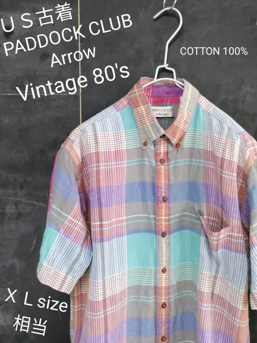 > ★送料無料★ US古着 PADDOCK CLUB Arrow 80's ヴィンテージ シャツ ボタンダウンシャツ BDシャツ 半袖 XL 相当