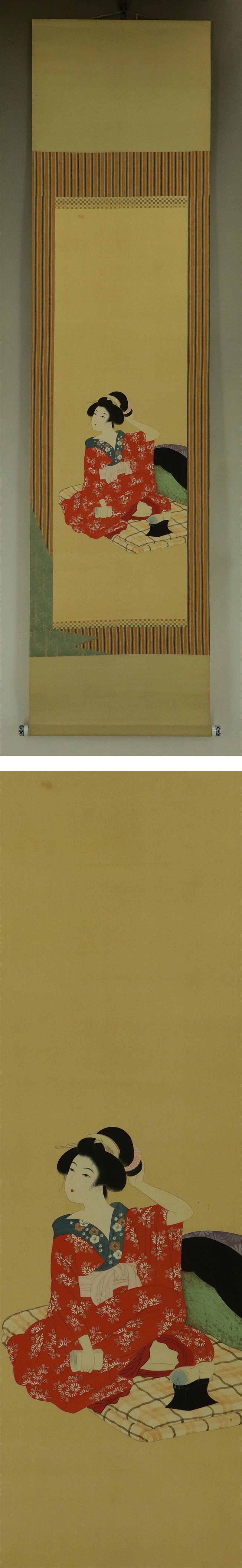 - 名品【肉筆】人物画【美人】◆絹本◆合箱◆掛軸 t07048