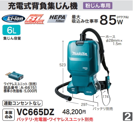 - マキタ 36V 充電式 背負集じん機 VC665DZ 18Vx2本使用 本体のみ 新品