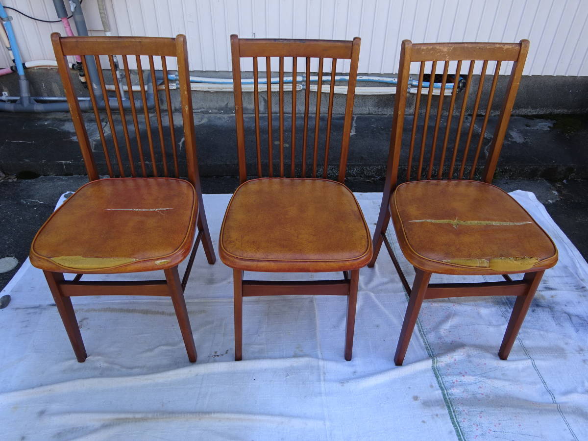 - 浜本工芸 ダイニングチェア 椅子 3脚セット 中古品(画像10枚目の椅子は出品外のリメイク参考画像)