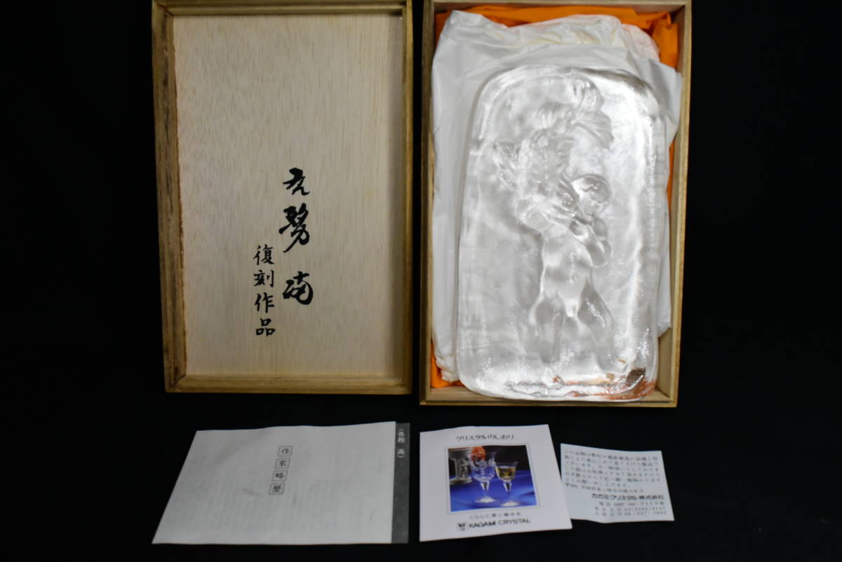 - 美品 カガミクリスタル 各務 満 作 クリスタル 鯱 シャチの児の像 置物