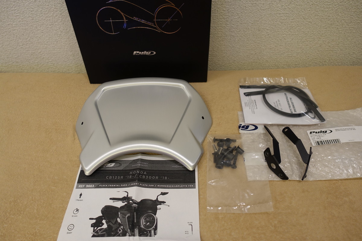 - Puig CB125R (18-20)/CB300R [CB250R?] (18-22) NEO SPORTS CAFE アルミニウム フロンタルプレート シルバー 9802P 定価17,800円 プーチ2