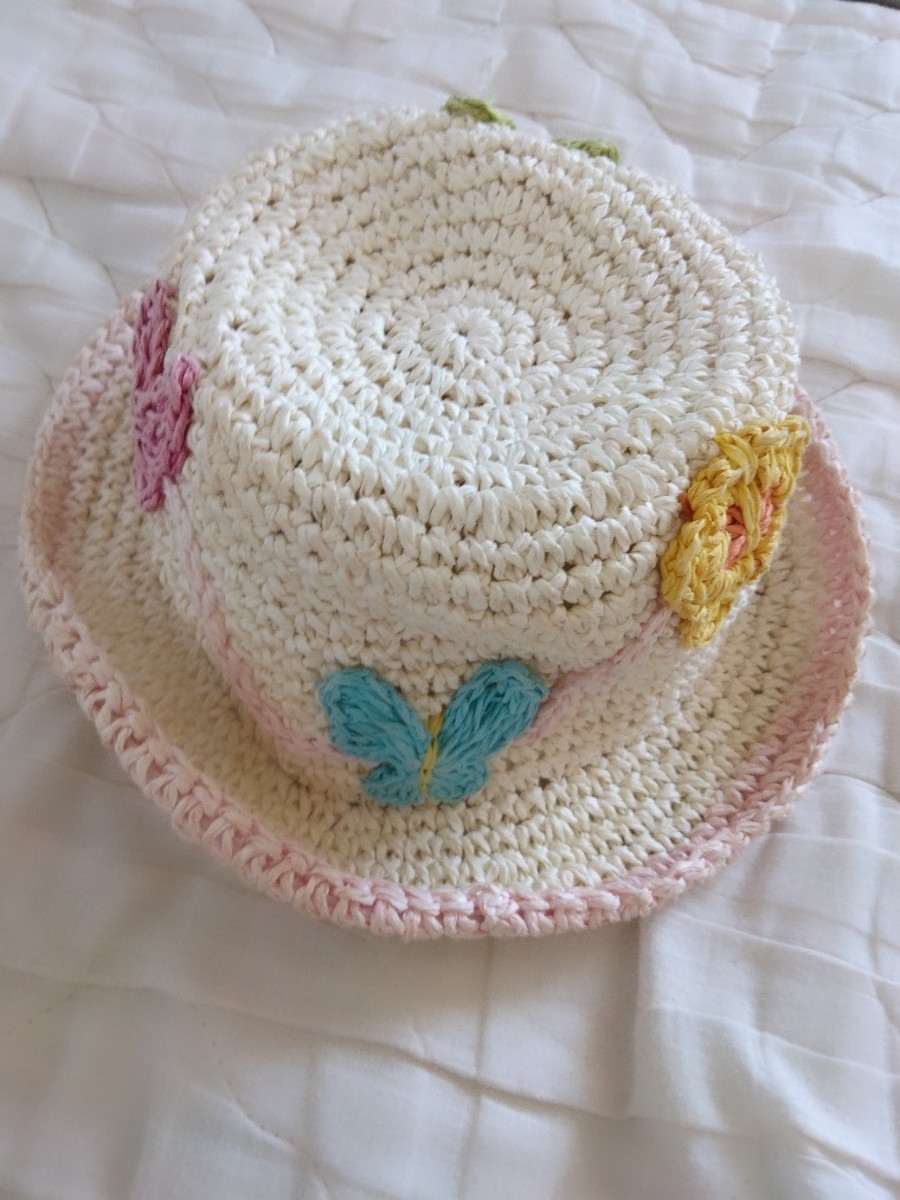 - 麦わら帽子 中古 女の子 幼児 サイズ48cm 0歳から3歳 花柄 可愛い ピンク 乳児 赤ちゃん ベビー キッズ 保育園 幼稚園