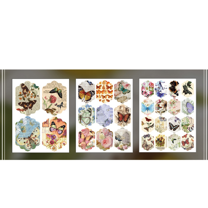 - 6シートセット シール 蝶 虫 バタフライ アンティーク ビンテージ ステッカー デコステッカー コラージュ レトロ 0534-6