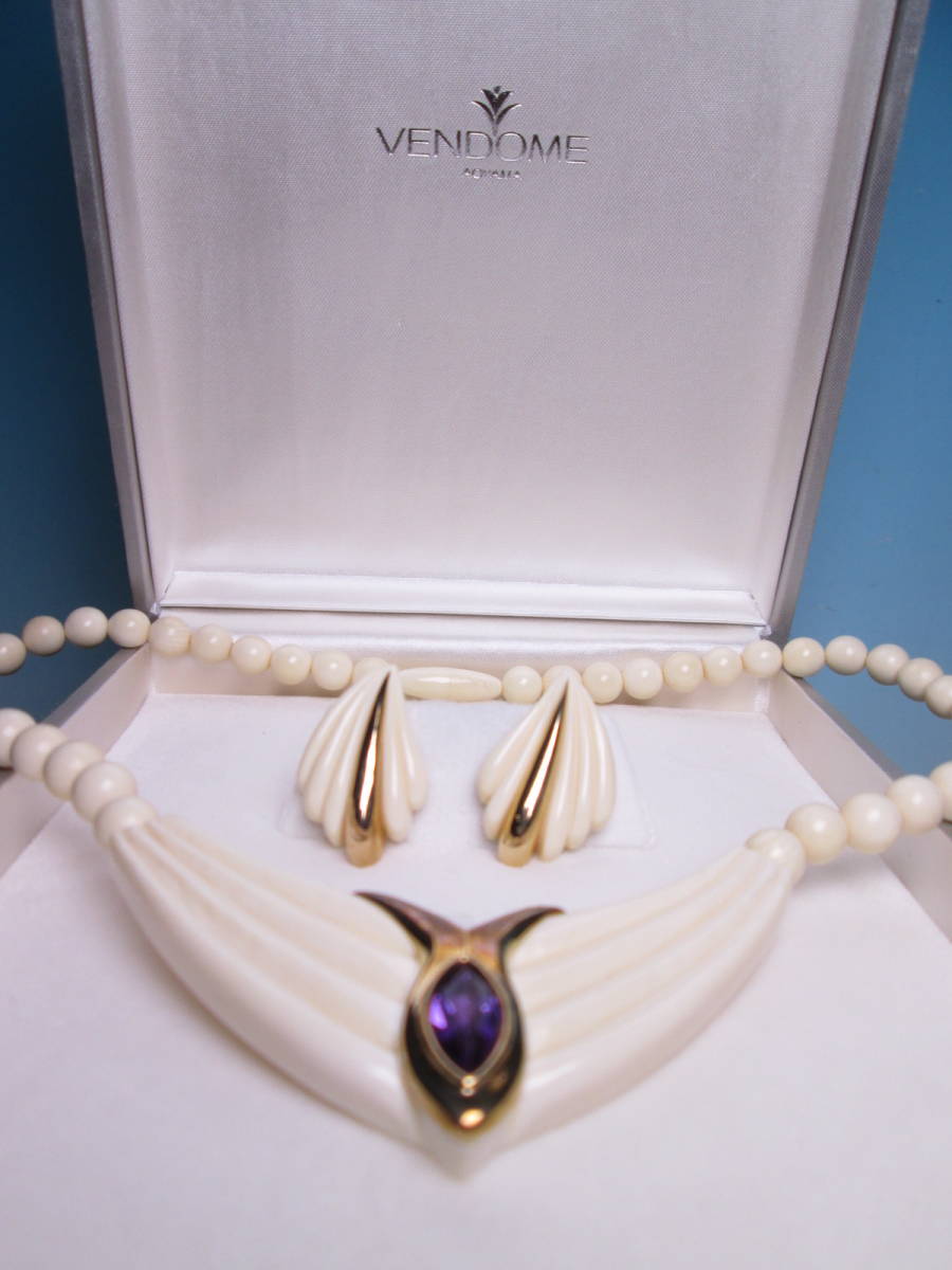 - ☆VENDOME ヴァンドーム青山 K10 金細工アメジスト飾りのネックレス&K10イヤリング 共ケース付