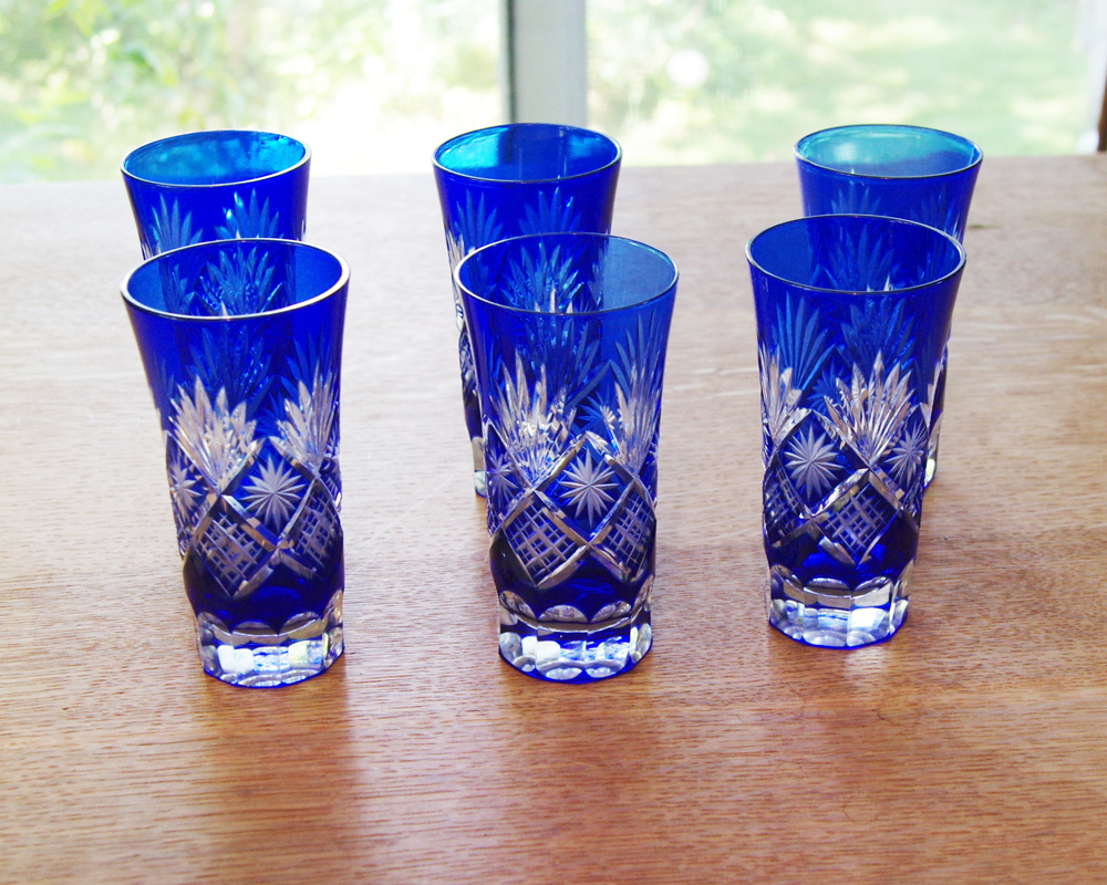 - Sale♪◆江戸切子 ◆タブロー◆グラス◆青◆6個セット