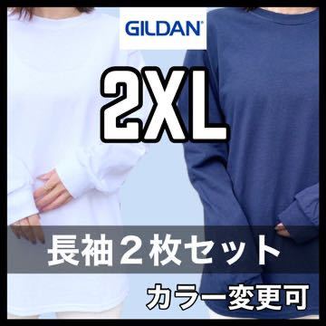 > 新品未使用 ギルダン 6oz ウルトラコットン 無地 長袖Tシャツ ロンT 白 ホワイト 紺 ネイビー 2枚セット 2XLサイズ ユニセックス GILDAN