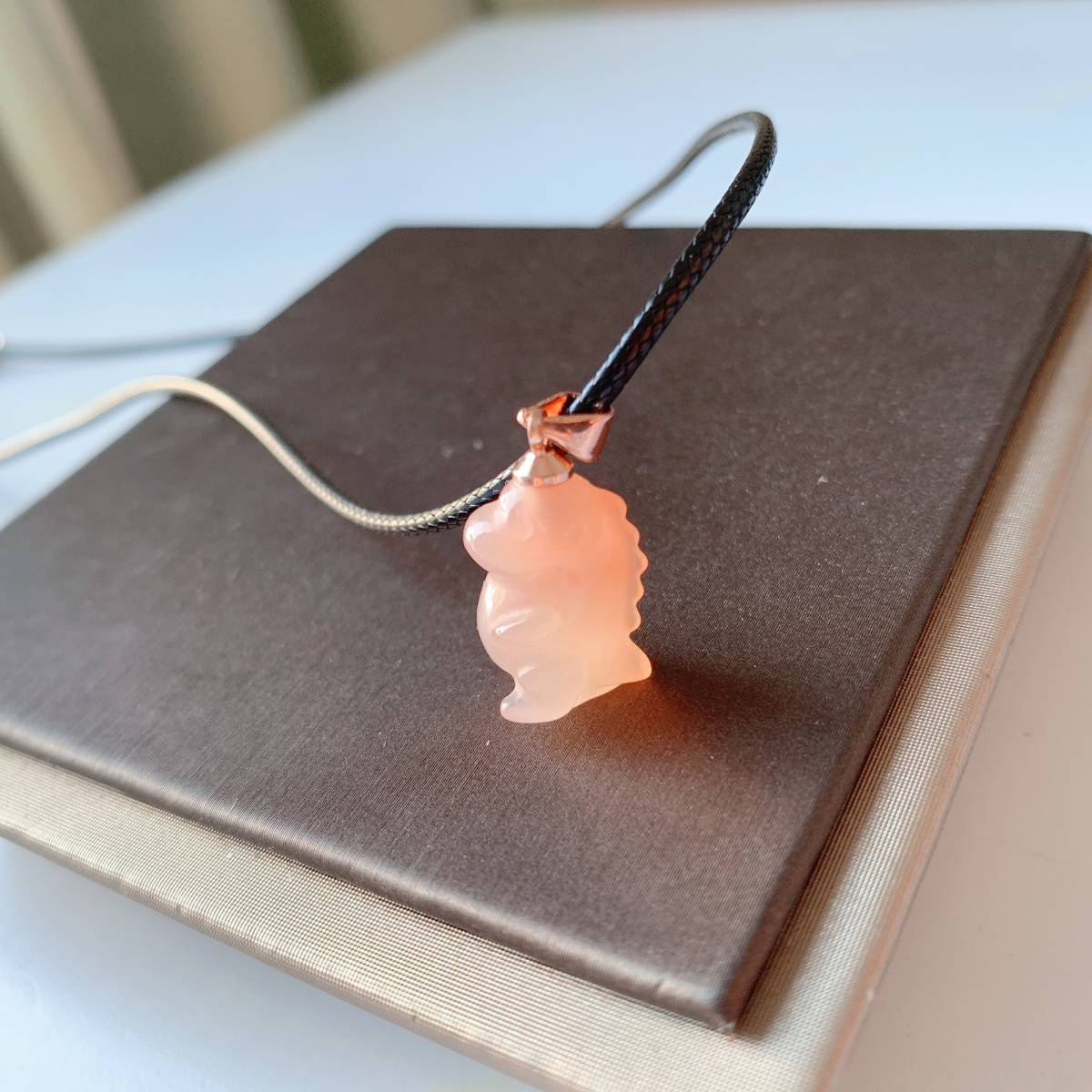 > ◇塩源瑪瑙◇アゲート◇ネックレスペンダント◇可愛い 怪獣形 彫刻◇天然石◇パワーストーン◇巾着袋付き◇プレゼントにも024P92711