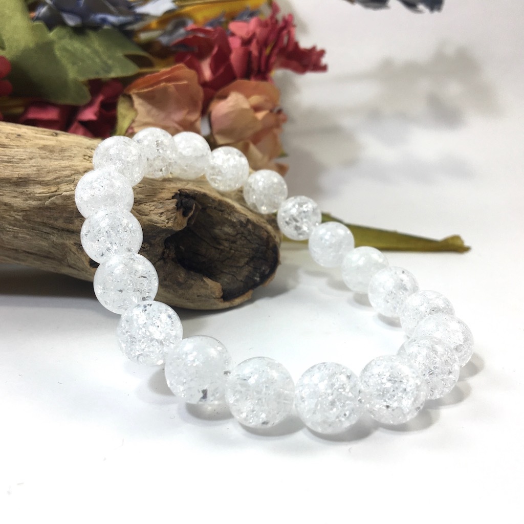 - クラック水晶 パワーストーン ブレスレット 10mm 天然石ブレス シンプル 開運 浄化 数珠ブレス メンズ・レディース 男性
