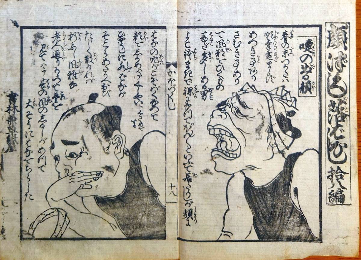- f230901018〇一枚刷り 浪花みやげ第2編第5集 顔づくし落ばなし 18編 ことば遊び しゃれ なぞ 判じ絵 見立番付 天保年間 塩屋喜兵衛板