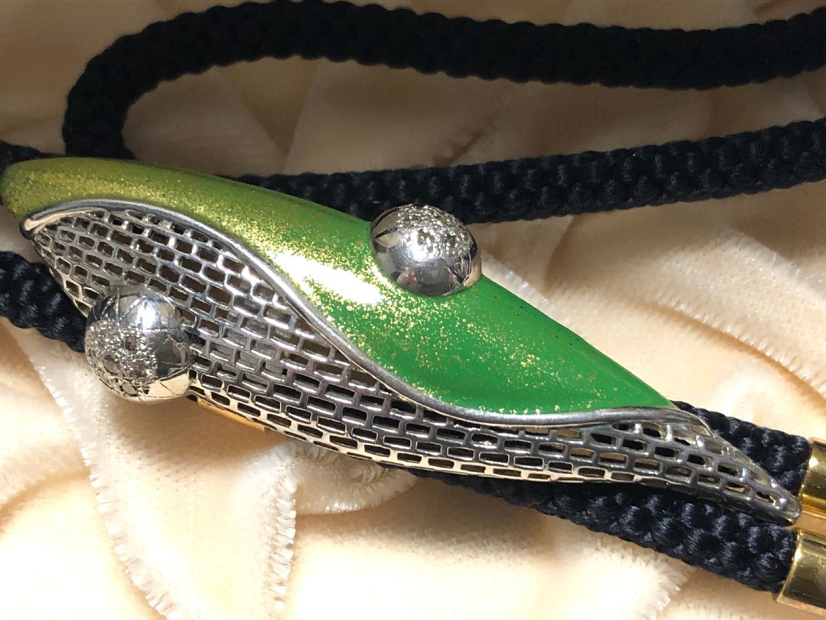 > 田村貴金属 マキエ優艶ジュエリー ダイヤモンド(0.295ct) K18 SILVER 金蒔絵 29.0g デザイン ループタイ ケース付属