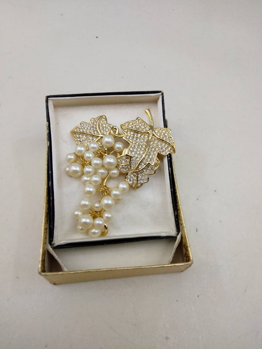 - 0714-0020 中古★ 雑貨 アクセサリー キラキラ ブローチ バッジ パール 真珠 葡萄