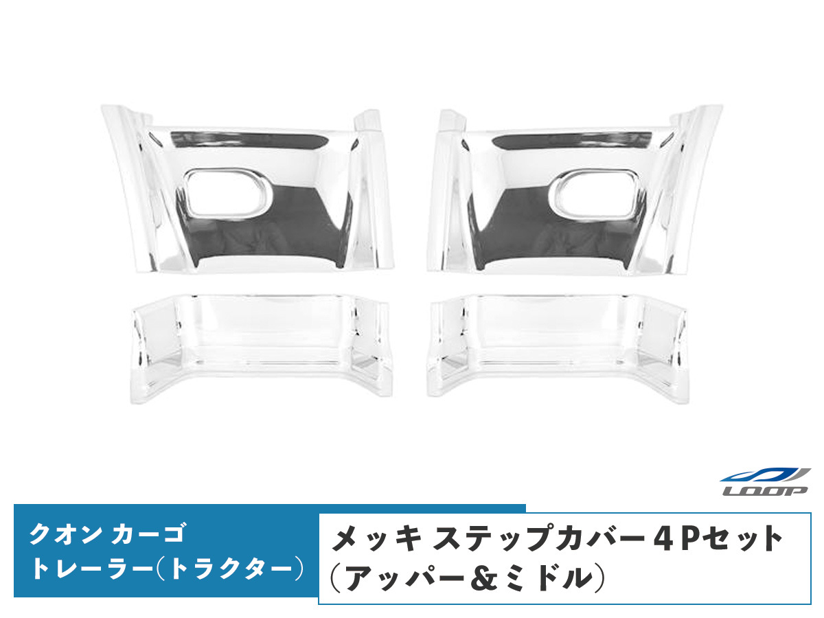 > 日産UD クオン パーフェクトクオン メッキ ステップカバー アッパー ステップカバー ミドル カーゴ トレーラー車用 貼り付けタイプ セット