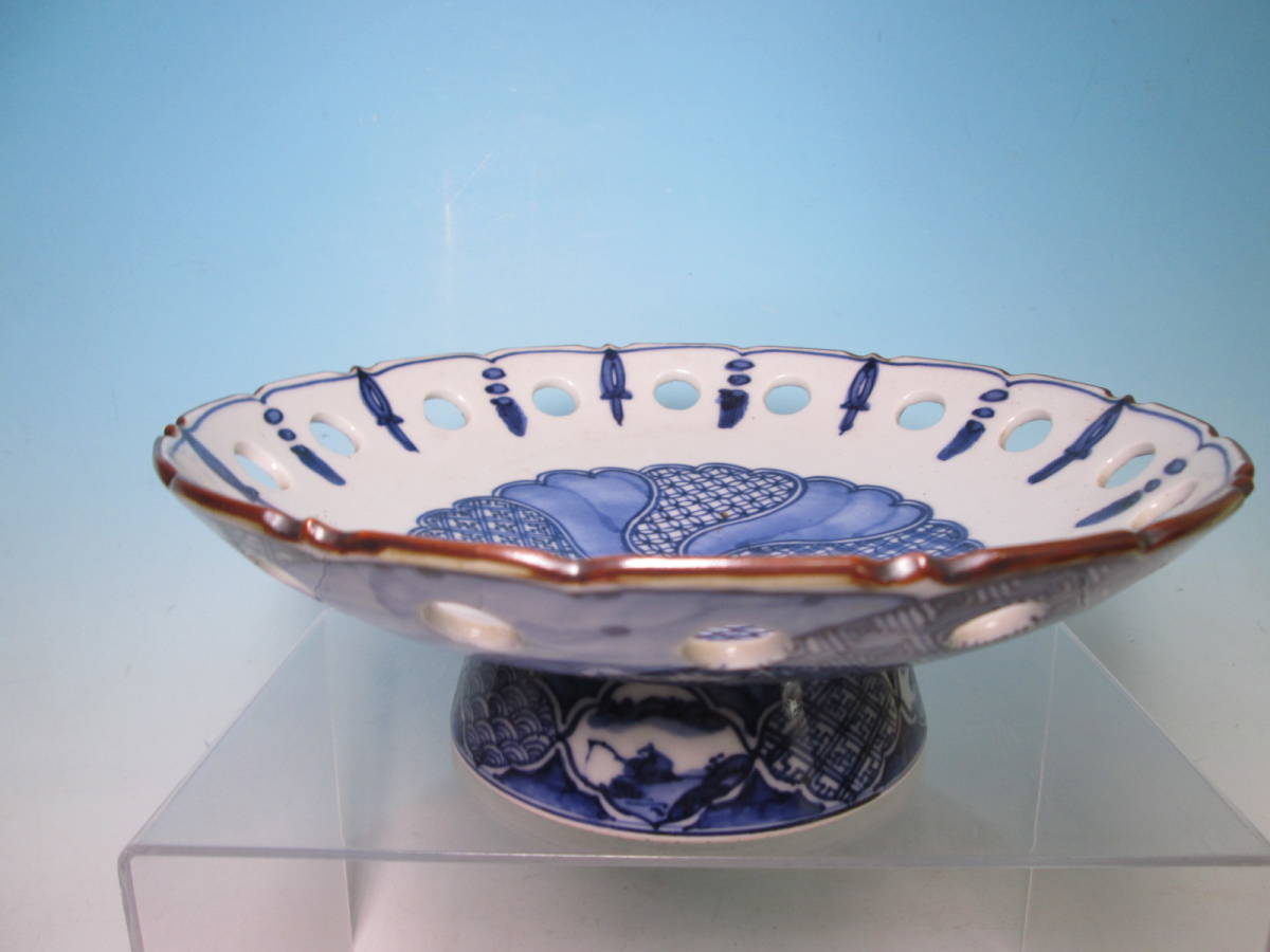 - ☆ 平安 坂口三楽 染付 祥瑞 捻じり花文 台皿 21,4cm 盛鉢/台鉢/青華
